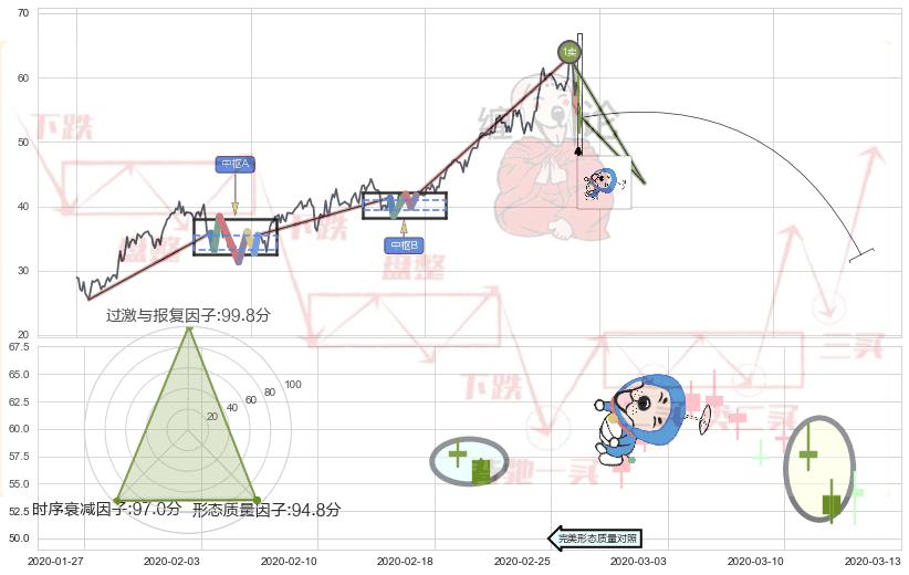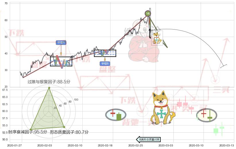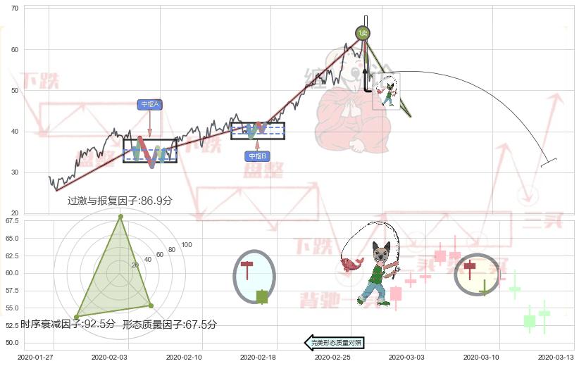 ➢ 🕰 价格走势在2020-03-06至2020-03-09期间形成吊颈线(上吊线),残存影响值:-4.17