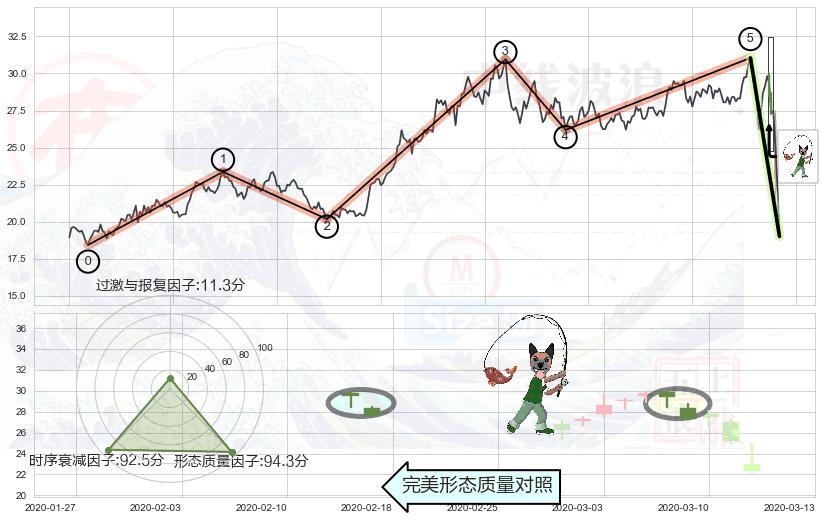 ➢ 🕰 价格走势在2020-03-06至2020-03-06期间形成单针探底(定海神针),残存影响值:3.36