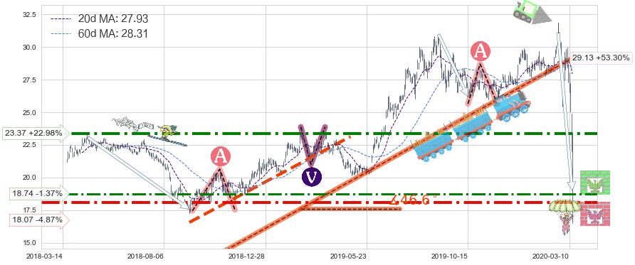 ♘ 阻力价格位18.74,可信任强度55.85%,距离最后交易2020-03-13形成的收盘价格19.00相差 -1.37%