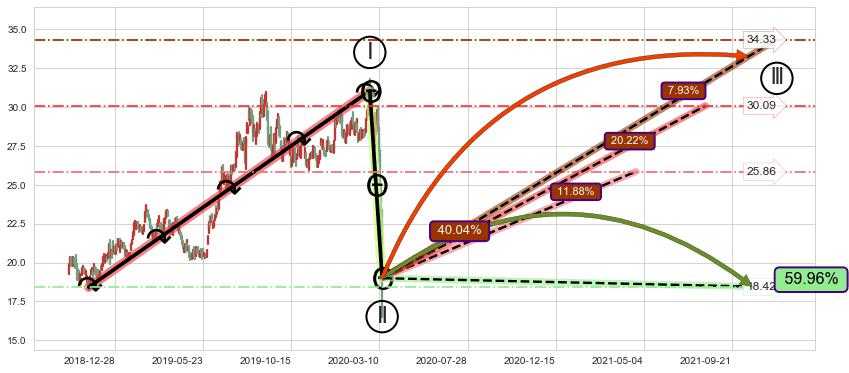➢ 循环浪继续向上【最高】位置(2021-11-30, 34.33),匹配聚类样本比例19.82%, 可能性概率7.93%