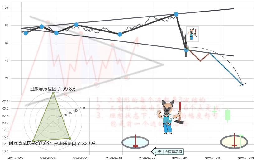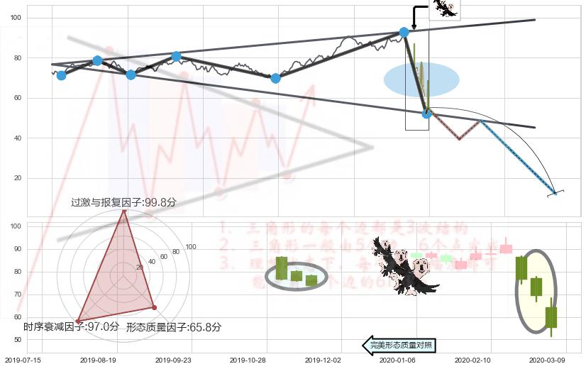 ➣ 【未确认突破,预测即将形成突破】【扩散】三角形反转起点:2019-03-27, 预测突破点:2020-03-20,形态共249交易日