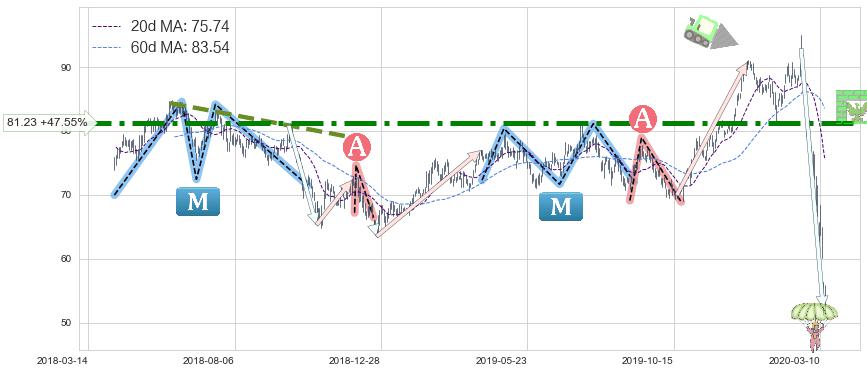 ➣ 2020-03-03到达第❷价格目标位置74.55