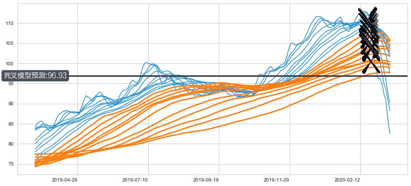 ➢ 70小时均线于(2020-02-21: 107.83)形成【死叉】基于【死叉历史模型】预测死叉后最低波谷价格: 99.70, 死叉后最低价格76.72,已经下跌超出预测最低波谷价格, 预期反弹