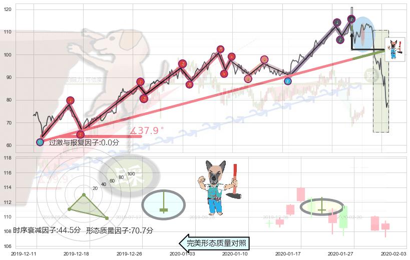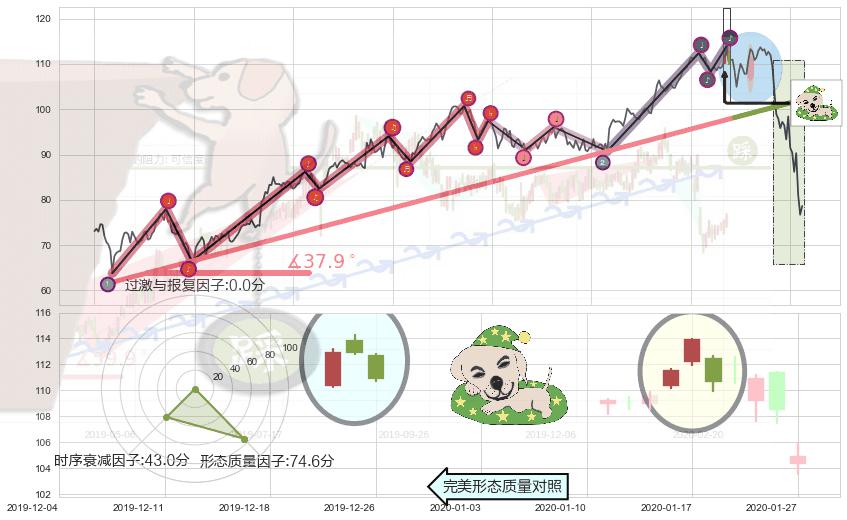 从2018-10-24至2020-01-24,共包含314个交易日,阶段股价上涨56.56%,阶段股价变动位移路程比: 1 : 6,上涨趋势角度: 37.9