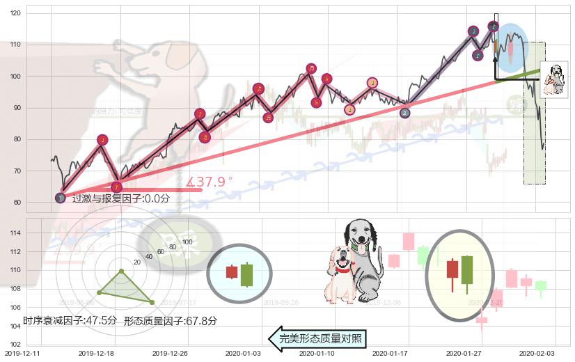 ✂️ 2018-10-24-2020-01-24上升趋势存在反转[风险],其原上升趋势的支撑位(102.11)已破位[强阻力信号],原上升趋势角度: 37.9˚