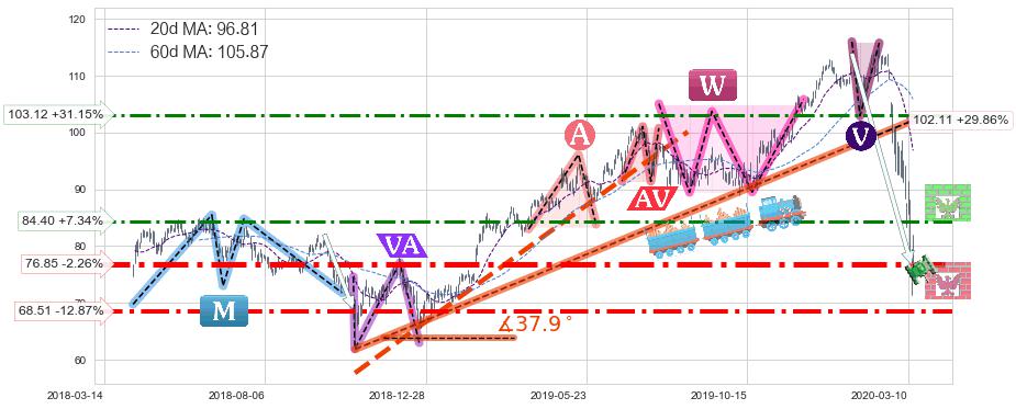 ♘ 阻力价格位103.12,可信任强度68.27%,距离最后交易2020-03-13形成的收盘价格78.63相差 +31.15%