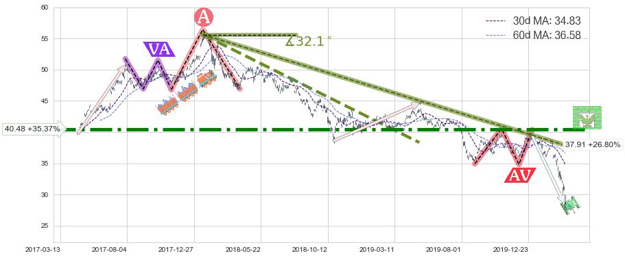 ➣ 【已达成】最小【整理】第一目标价格→(2020-03-09: 31.99 ), 后续继续【整理】下跌动力微弱,下跌较小