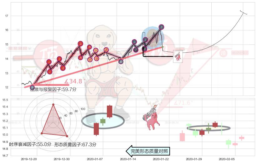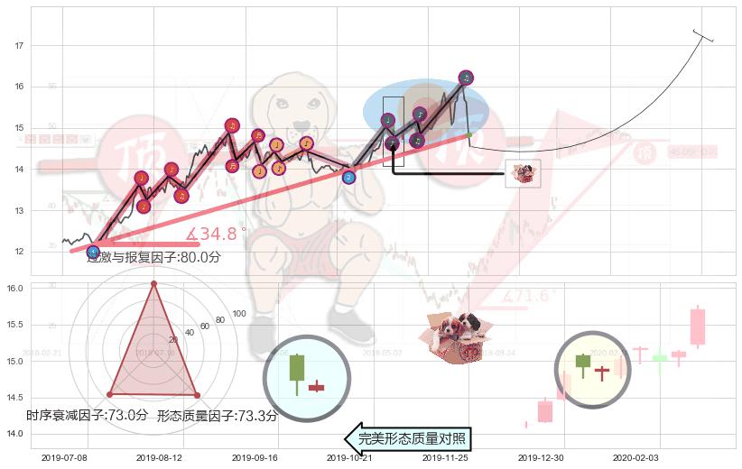 从2019-11-11至2020-03-12,共包含84个交易日,阶段股价上涨7.93%,阶段股价变动位移路程比: 1 : 6,上涨趋势角度: 35.6