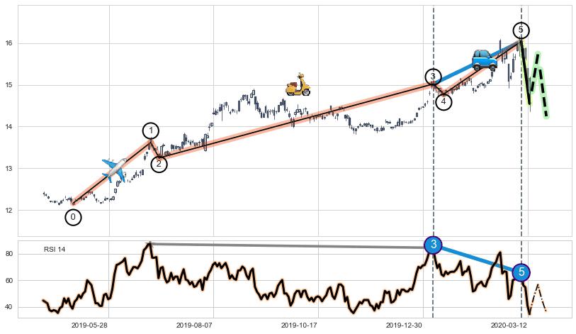 ➣ 波浪理论:猜想止涨 → 下跌 →【拐点】浪5已完成 → 大趋势均值回复