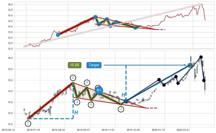 ➣ 收盘价(2020-01-28: 14.99 )→回踩→第一根k线高点(2020-01-24: 15.06 )