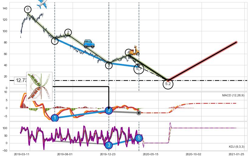 ➣ 5.1: 预测当前第5浪位置(2020-03-12, 36.92),仍然有下跌空间