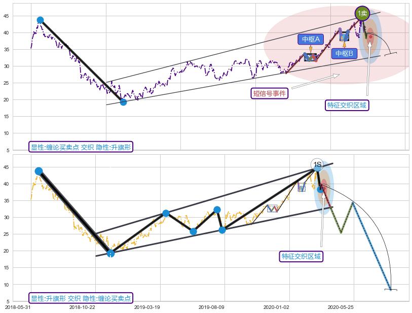 ➣ 升旗形:猜想临近关键支撑位突破点 → 临近拐点下跌 → 风险信号 → 大趋势均值回复