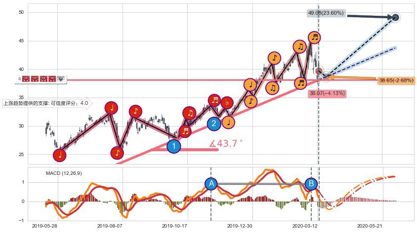 ♘ 阻力价格位43.03,可信任强度62.91%,距离最后交易2020-03-13形成的收盘价格39.71相差 +8.36%
