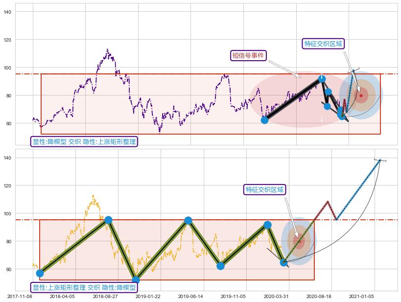 ➢ 降楔型属【短级别信号事件】上涨矩形整理属【长级别信号事件】长短周期组合信号事件, 短长事件长度比25.83%