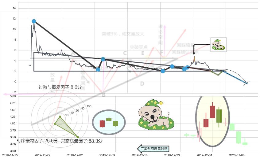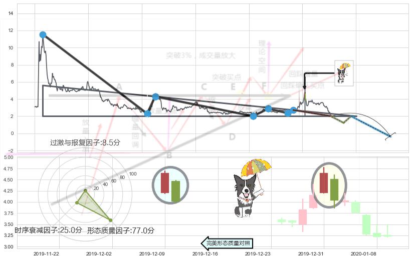 ➢ 🕰 价格走势在2019-12-30至2020-01-02期间形成黄昏之星(夜星),残存影响值:-2.02