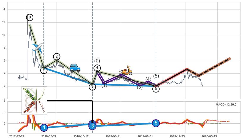 ➣ 下跌螺旋桨 + 下降三角整理临近支撑猜想转换阻力下跌信号叠加后【信号初始稳固度】高,【看空】信号叠加【可信度影响大】