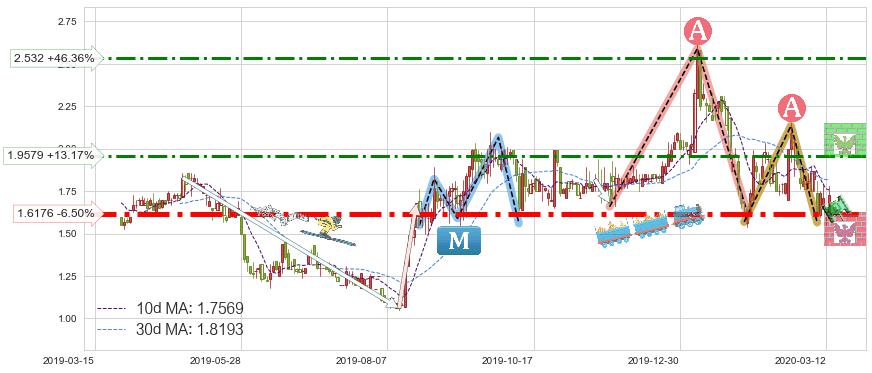 ♘ 阻力价格位2.532,可信任强度55.05%,距离最后交易2020-03-13形成的收盘价格1.7300相差 +46.36%