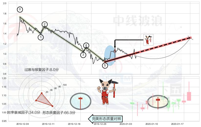 ➣ 锤头线(锤子线) + 波浪理论下跌浪:浪5反弹拐点信号叠加后【目标达成率】中等,【看多】信号叠加【存续影响中等】