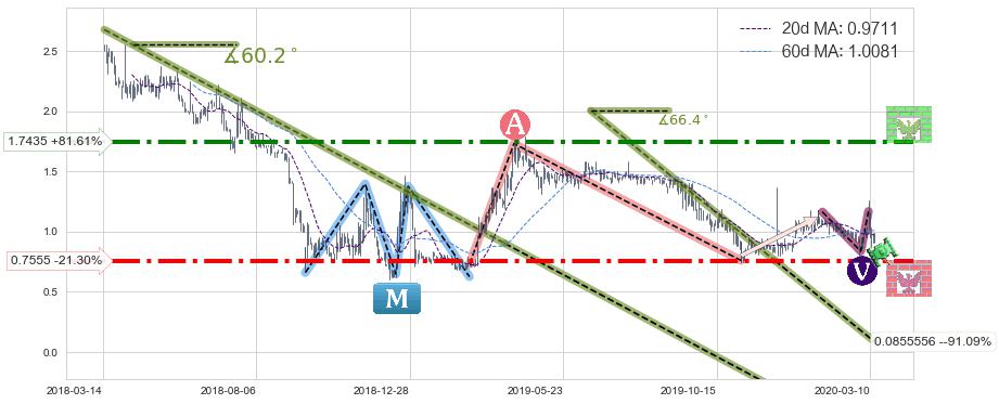 ➢ 【仅预测突破】最后价格:0.9600与预测突破价格:0.9113→【空间中等】后续最小【整理】第一目标价格→(2020-05-12: 0.38128 )