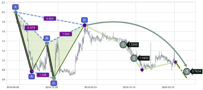 ➣ BC回撤位置在AB的123.6%,符合形态要求