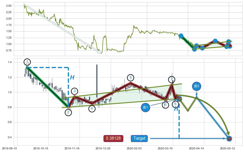 ➣ 最小中继整理跌幅→𝐇: 0.5300 (𝐇旗杆的长度:旗杆起点→顶点)