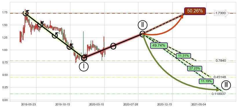 ➣ 循环浪继续向下【平均值】位置(2021-05-21, 0.45148),匹配聚类样本比例54.75%, 可能性概率27.23%