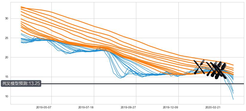 ➣ 35小时均线于(2020-02-12: 16.94)形成【死叉】基于【死叉历史模型】预测死叉后最低波谷价格: 14.45, 死叉后最低价格7.38,已经下跌超出预测最低波谷价格, 预期反弹