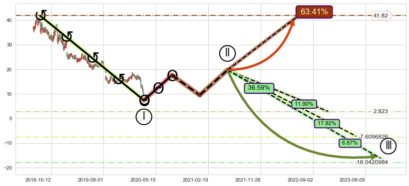 ➢ 高概率大级别循环下跌浪被破坏,反转向上(突破5浪起点)概率63.41%