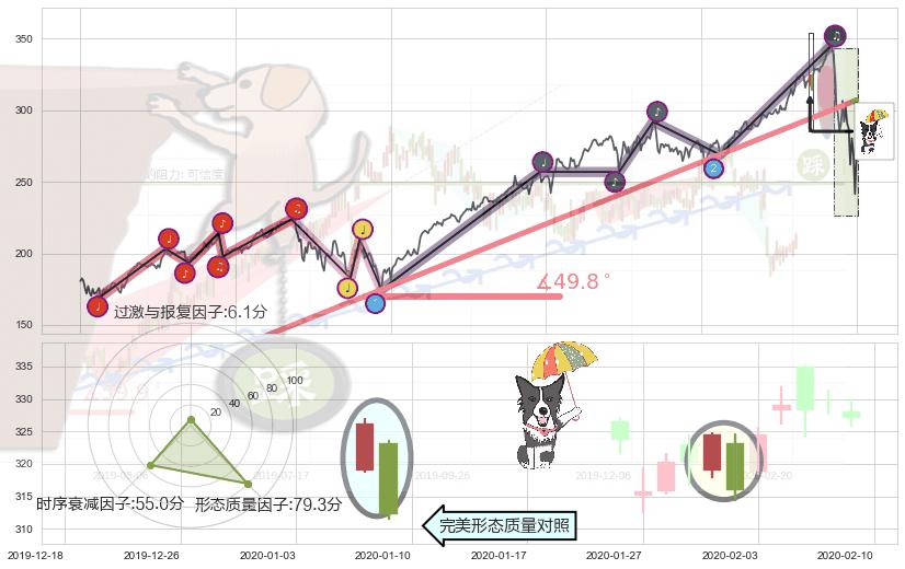 ➢ 🕰 价格走势在2020-02-10至2020-02-24期间形成黄昏之星(夜星),残存影响值:-7.02