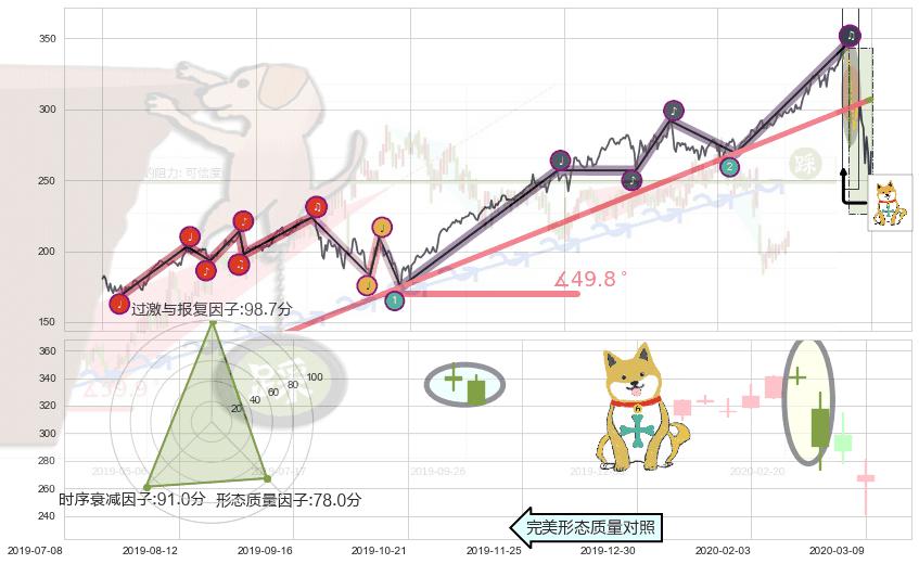 从2018-04-06至2020-03-11,共包含486个交易日,阶段股价上涨53.69%,阶段股价变动位移路程比: 1 : 10,上涨趋势角度: 49.8