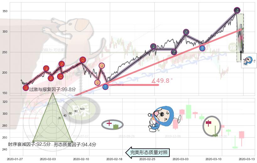 ➢ 2018-04-06-2020-03-11上升趋势存在反转[风险],其原上升趋势的支撑位(307.09)已破位[强阻力信号],原上升趋势角度: 49.8˚