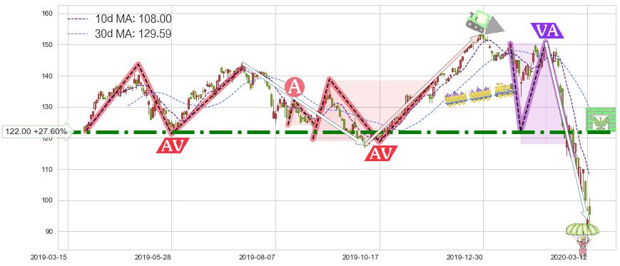 ♘ 阻力价格位122.00,可信任强度85.20%,距离最后交易2020-03-13形成的收盘价格95.61相差 +27.60%