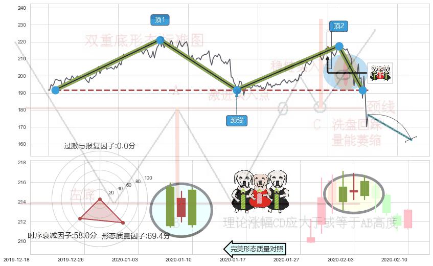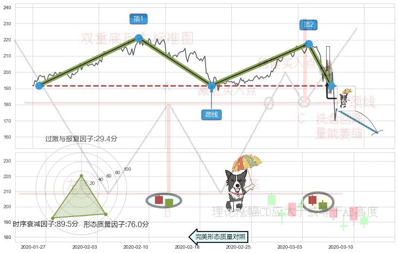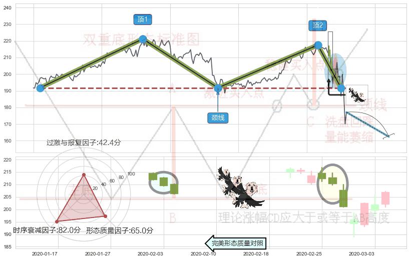 ➣ 【已确认突破】双重顶 起点:2019-04-24,突破点:2020-03-09,形态共221交易日