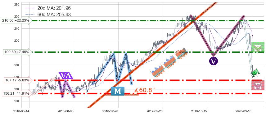 ➣ 市场信心【丧失】已在2020-03-09突破颈线提供的【支撑位】 191.78