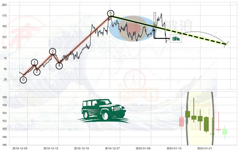➢ 循环浪继续向上【最低】位置(2022-01-20, 177.86),匹配聚类样本比例32.45%, 可能性概率11.93%