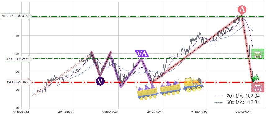 ♘ 阻力价格位97.02,可信任强度45.21%,距离最后交易2020-03-13形成的收盘价格88.82相差 +9.24%