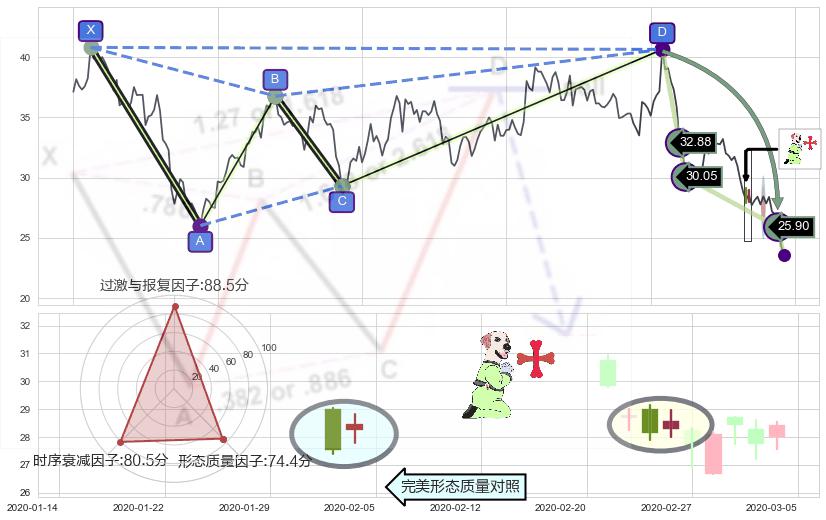 ➣ 已完成【蝴蝶】形态起点X: 2019-04-01, 终点D: 2020-01-13, 共199交易日