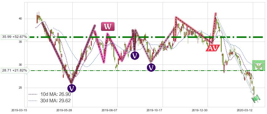 ➣ 【已达成】最小【整理】第一目标价格→(2020-03-12: 25.30 ), 后续继续【整理】下跌动力依然存在,下跌空间适中