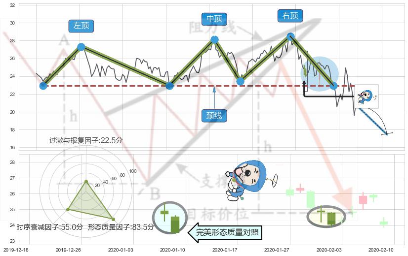 ➢ 【卖1】: 激进型 卖点→(2020-02-25: 22.95 )形成突破三重顶【反转】形态