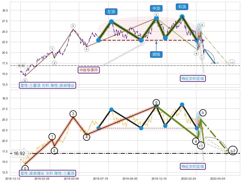 ➢ 三重顶属【中级别信号事件】波浪理论属【长级别信号事件】中长周期组合信号事件,中长事件长度比55.05%