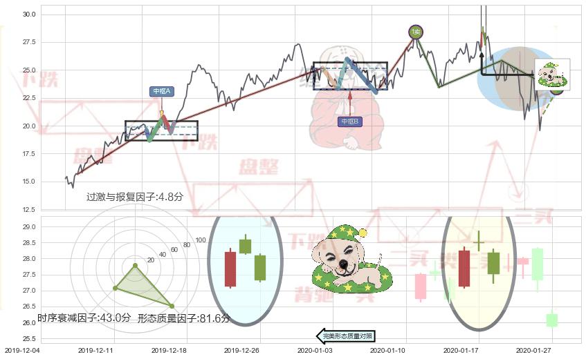➢ 高点影线(2020-01-28: 26.59 )→回踩→第二根k线高点(2020-01-27: 26.41 )