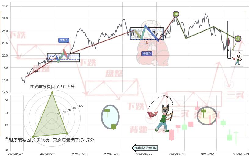 ➢ 🕰 价格走势在2020-03-13至2020-03-13期间形成锤头线(锤子线),残存影响值:7.48
