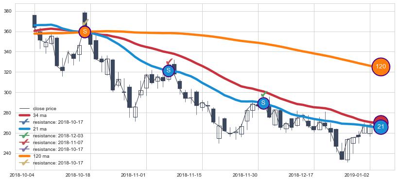 ➢ 最优均线组合共正确确认支撑阻力信号12处,正确确认率 48.00%