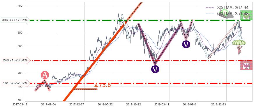 ♘ 阻力价格位396.33,可信任强度96.67%,距离最后交易2020-03-13形成的收盘价格336.30相差 +17.85%