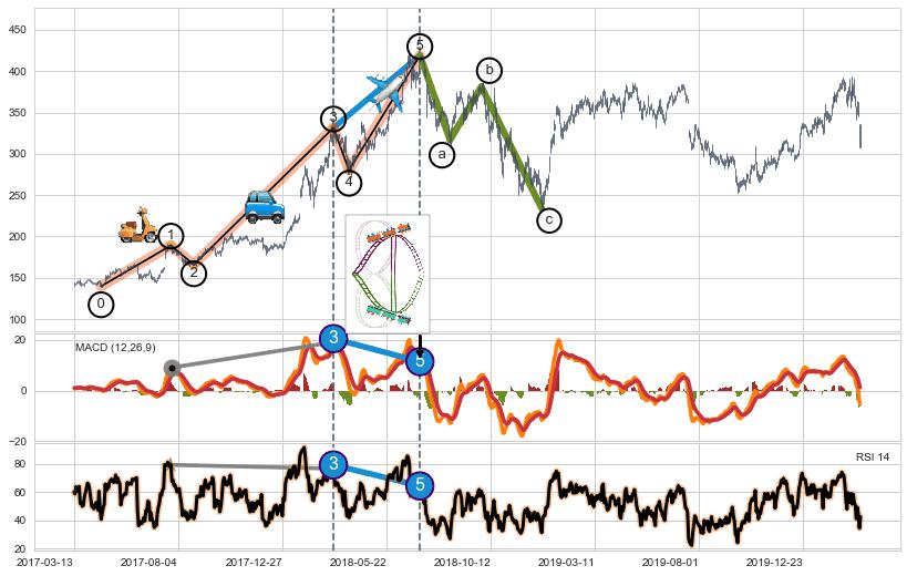 ➣ 第一, 三, 五浪上涨动能逐渐【增强变大】,趋势不断加固