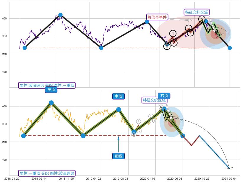 ➢ 波浪理论属【短级别信号事件】三重顶属【长级别信号事件】长短周期组合信号事件, 短长事件长度比22.62%