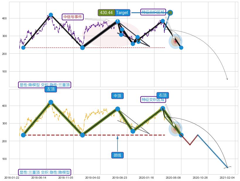 ➢ 降楔型属【中级别信号事件】三重顶属【长级别信号事件】中长周期组合信号事件,中长事件长度比40.87%