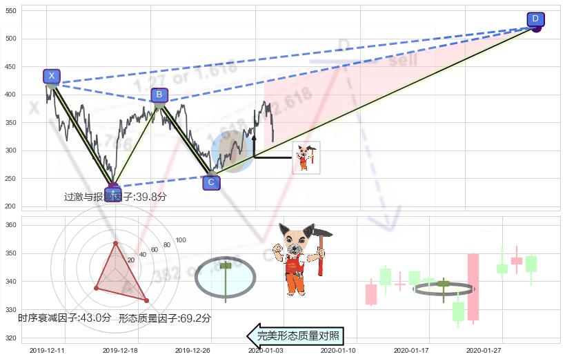 ➢ 🕰 价格走势在2020-01-21至2020-01-21期间形成锤头线(锤子线),残存影响值:3.97