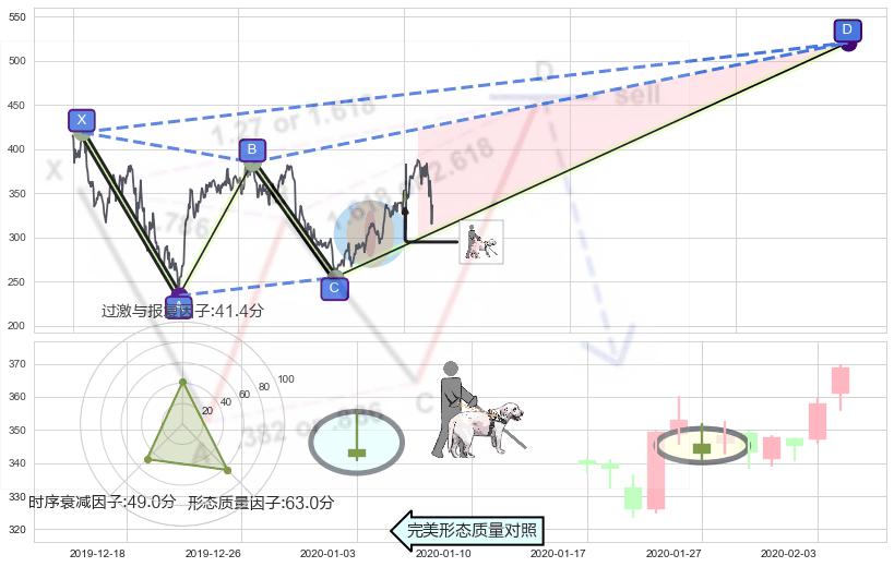 ➢ 仙人指路 🔜 谐波蝴蝶c拐点上涨支撑 综合量化分数:54.64 【偏多】