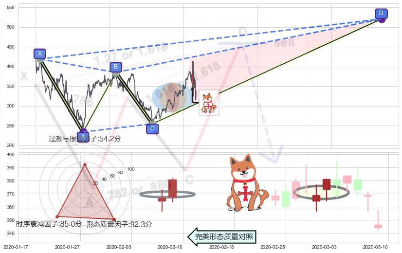 ➣ D点拟合预测价格520.56,距离最后交易收盘价格336.30相差 +54.79%